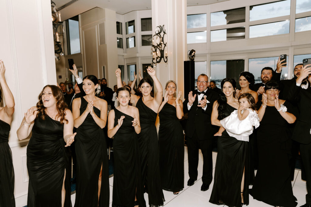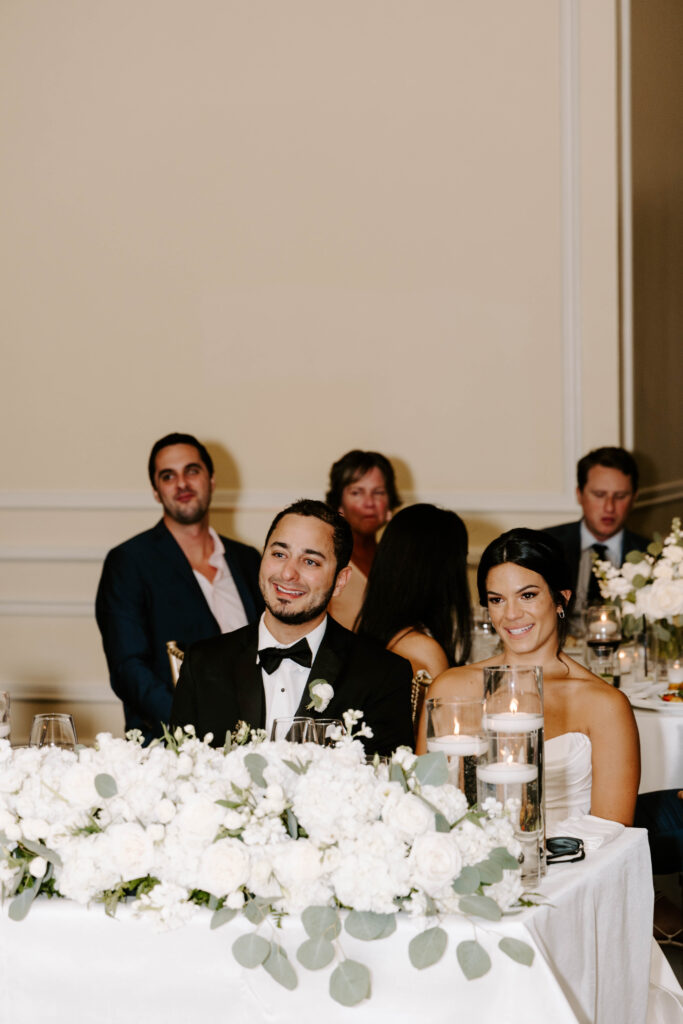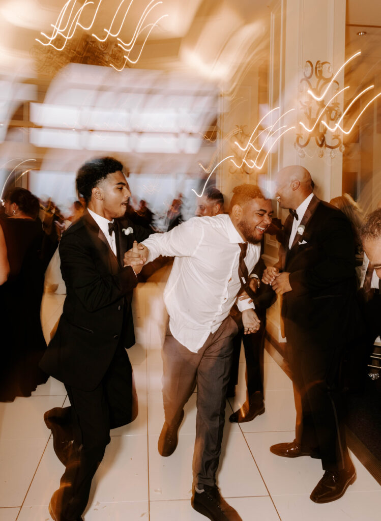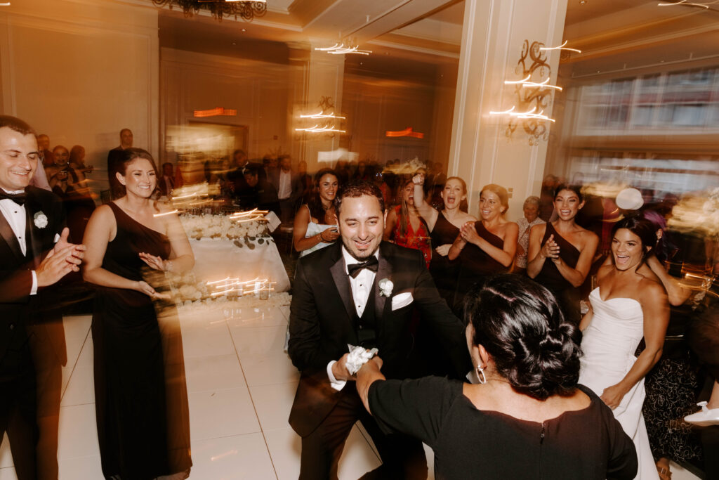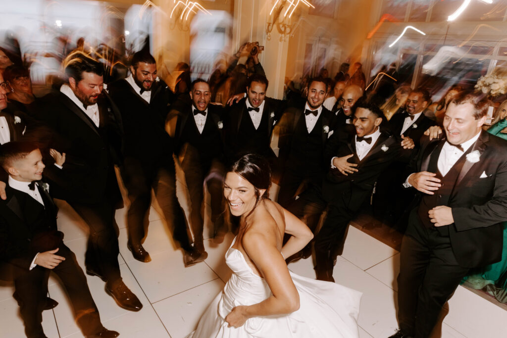 Next, the reception begins in the hotel’s elegant ballroom. The space feels refined yet full of energy. As the night continues, heartfelt toasts bring laughter and happy tears. Shortly after, the dance floor fills and stays lively all evening. Because of the vibrant atmosphere, the celebration feels fast paced, joyful, and distinctly Boston.