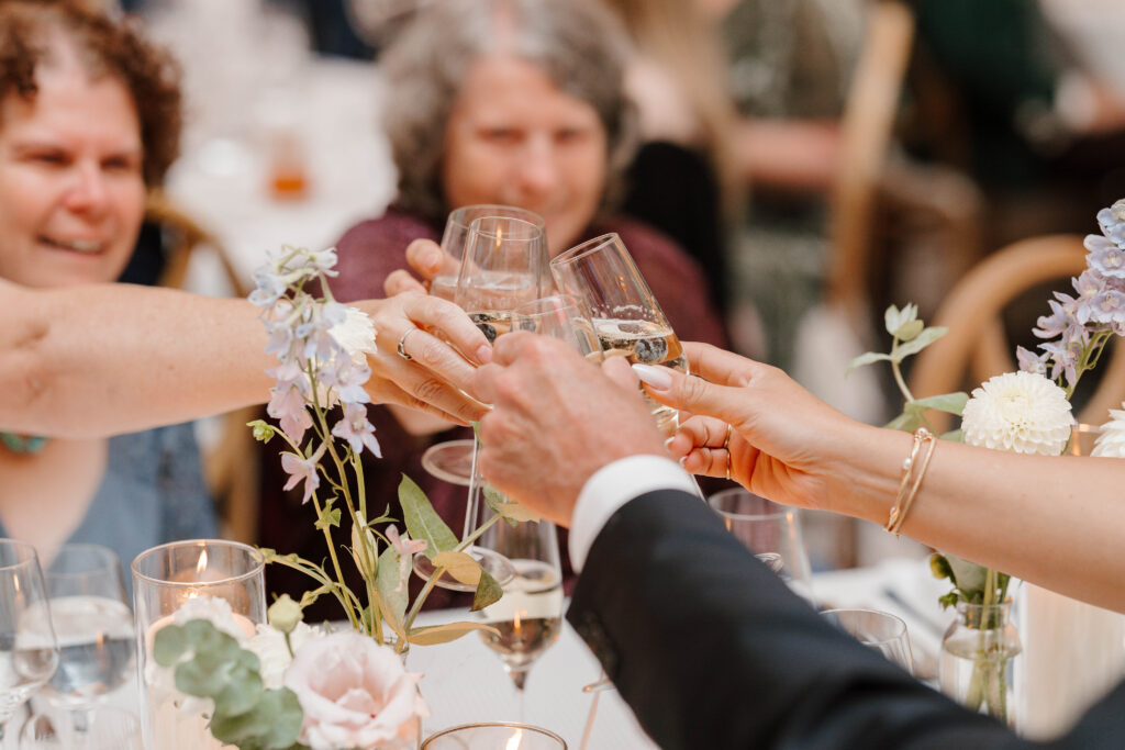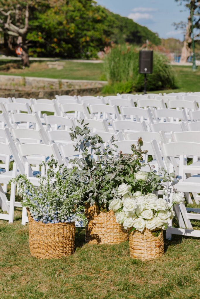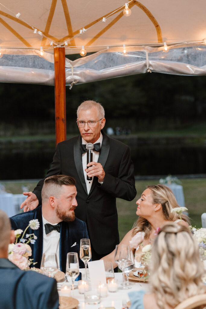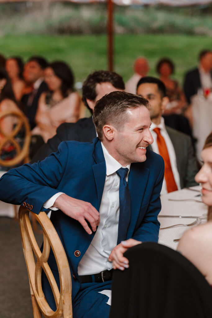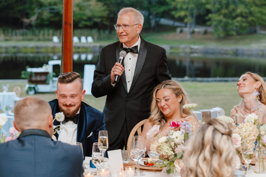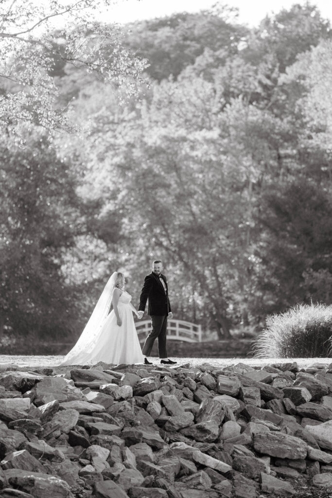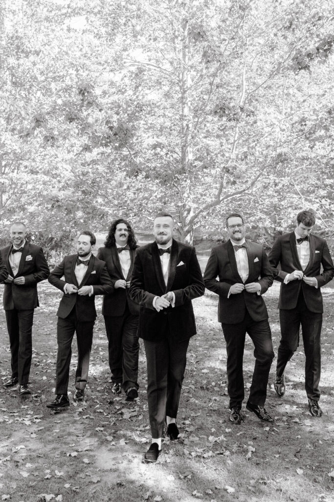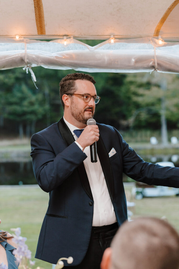 Mallory and Eric shared their first look at the Point, surrounded by trees with the softest golden light filtering through. It was one of those quiet, beautiful moments that set the tone for the whole day. From there, guests gathered at the Great Diamond Island Inn for a ceremony that felt both timeless and intimate — with ocean views and a gentle fall breeze.