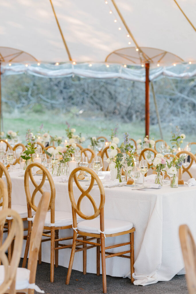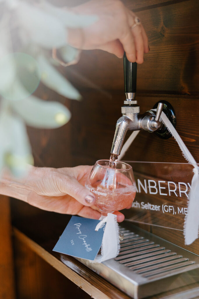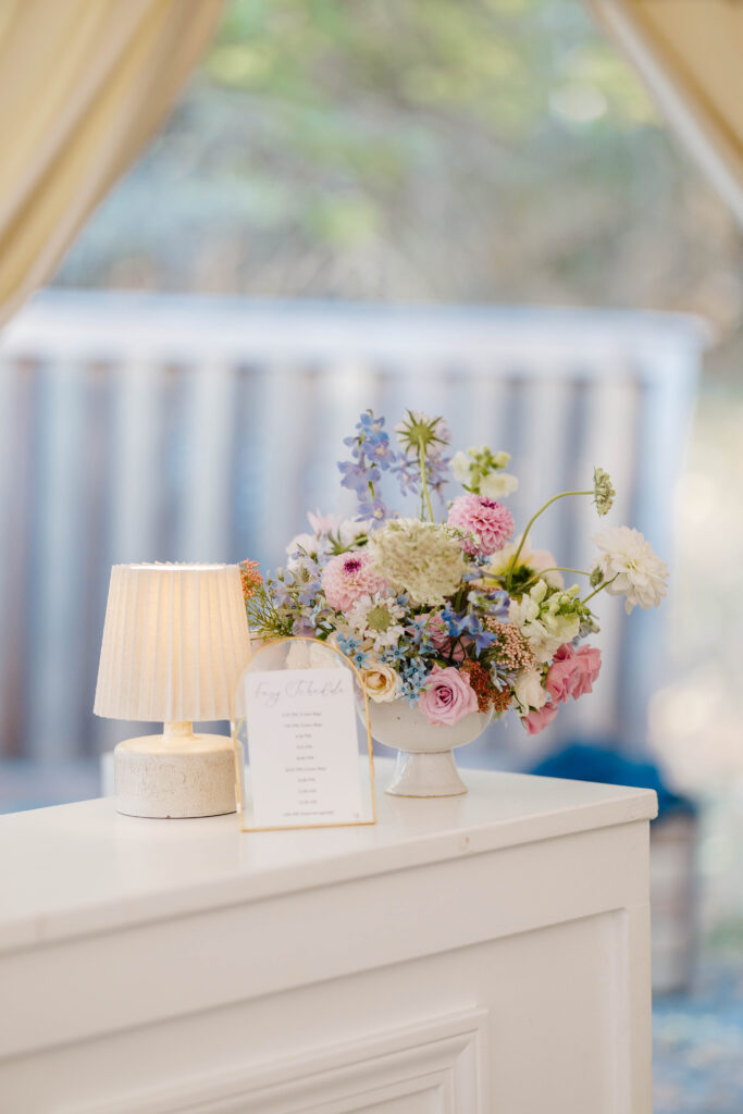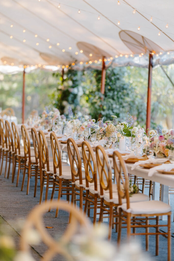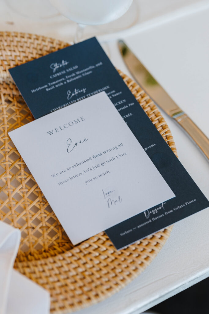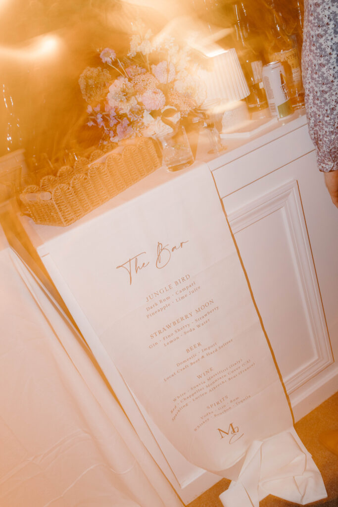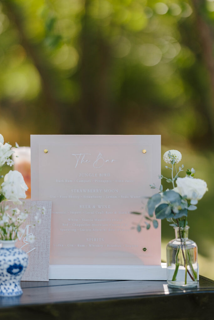 During cocktail hour, guests sipped from The Roaming Speakeasy — a stylish mobile bar serving beer on tap and craft cocktails that perfectly fit the laid-back island vibe. Laughter carried through the air as everyone mingled under the trees before moving to the tented reception space that had been completely transformed with elegant seating, lush florals, and rows of glowing candles.