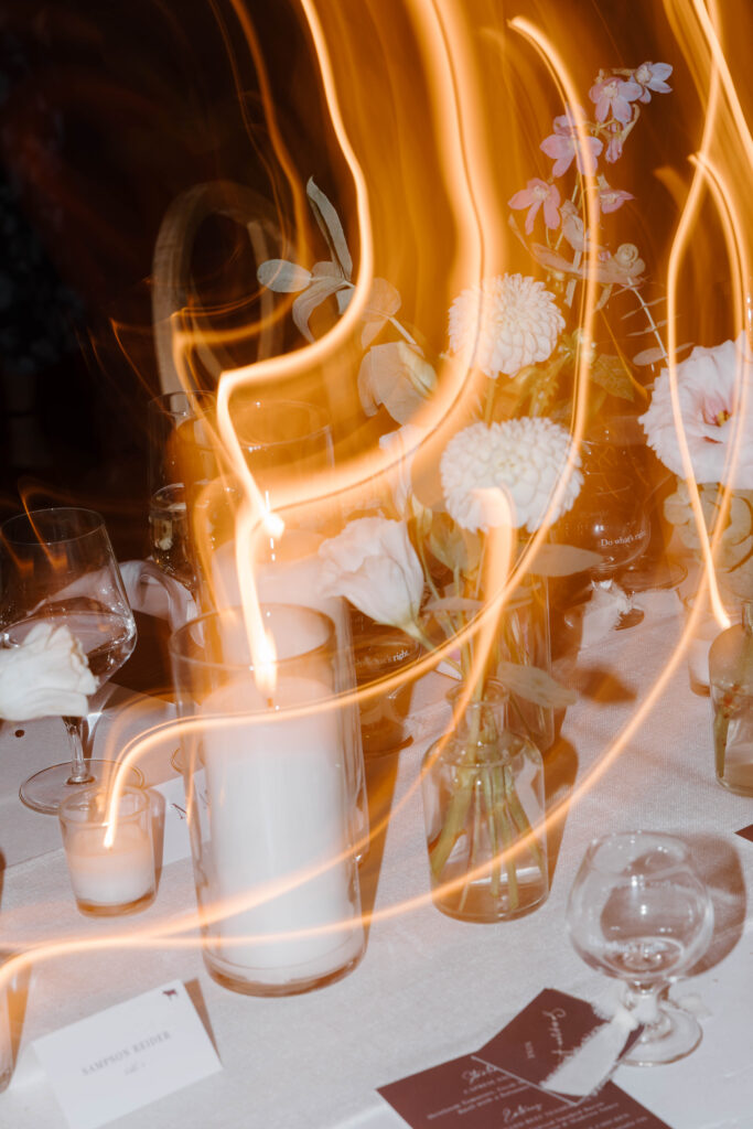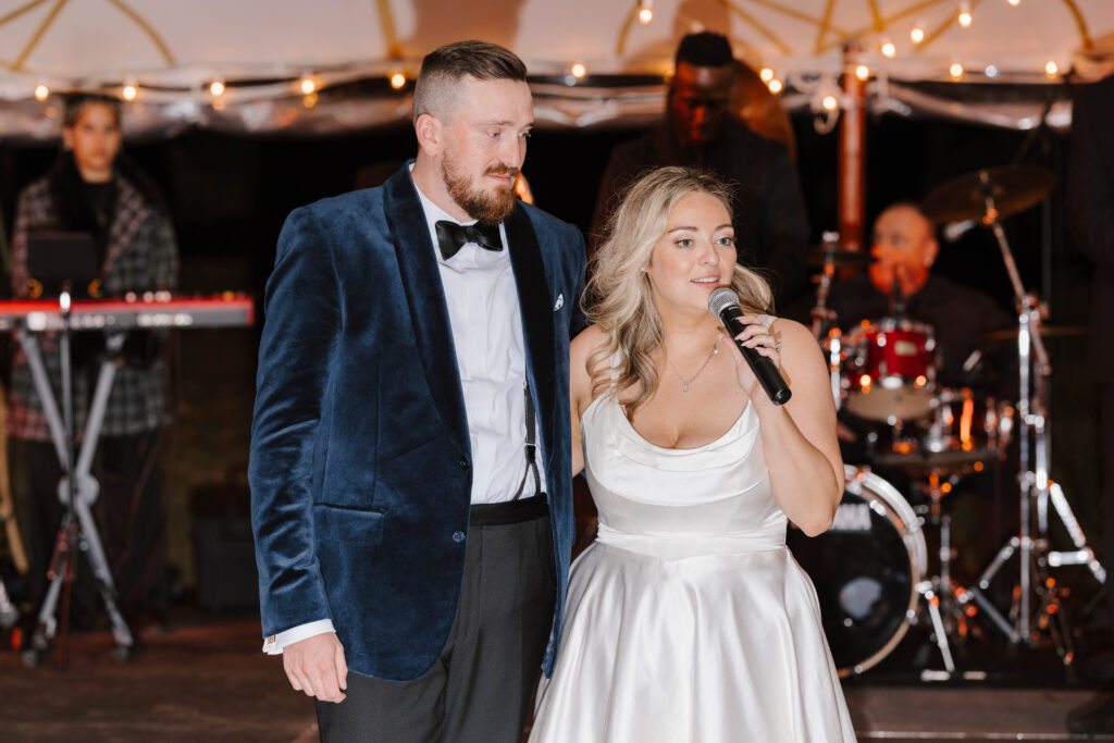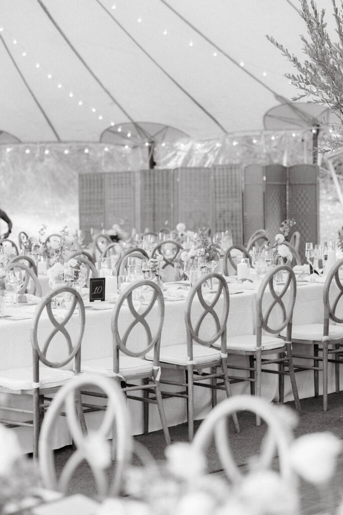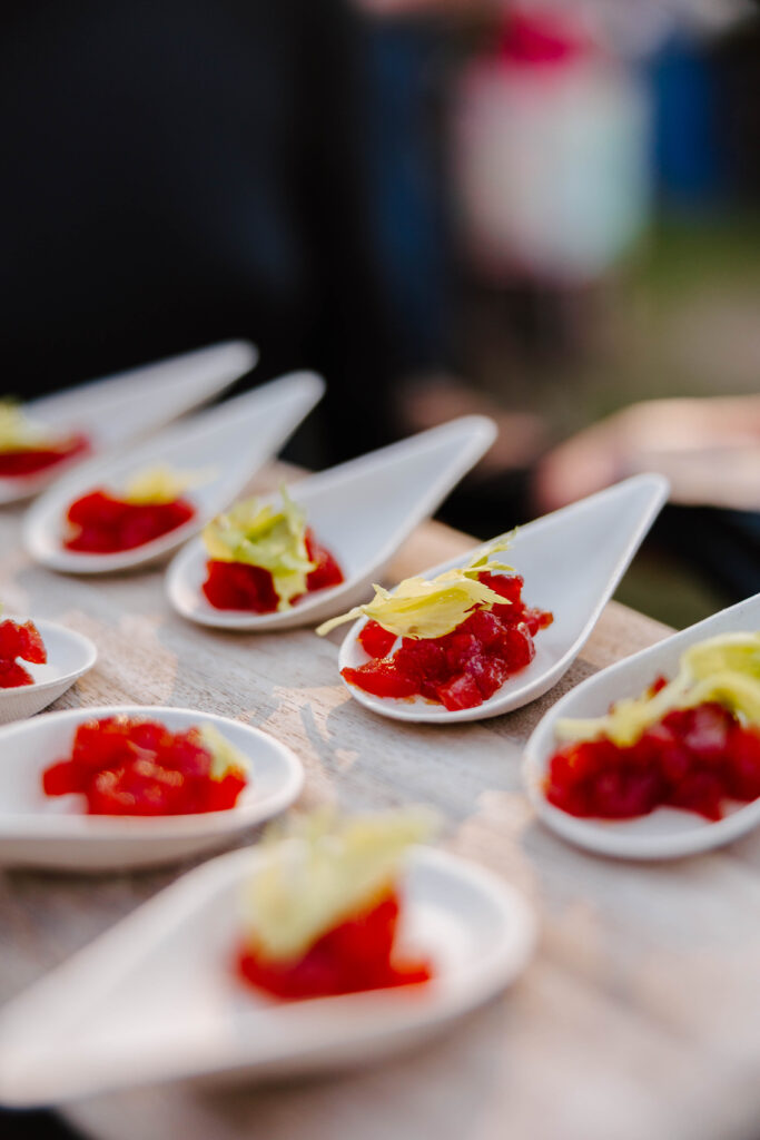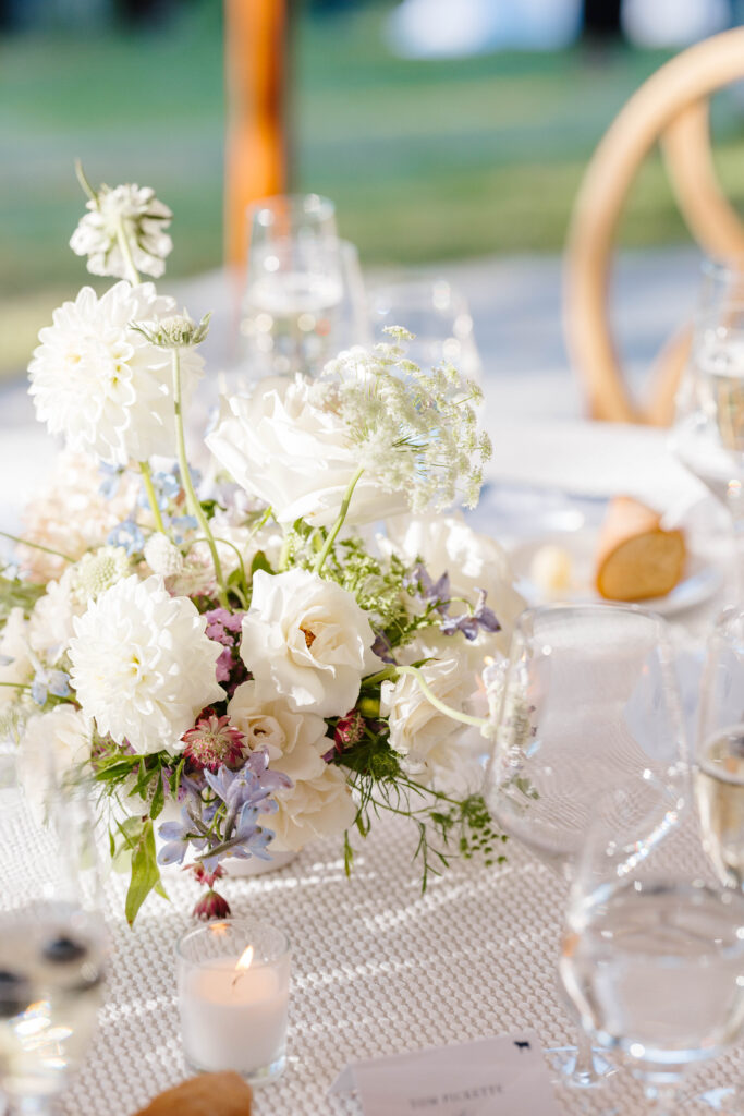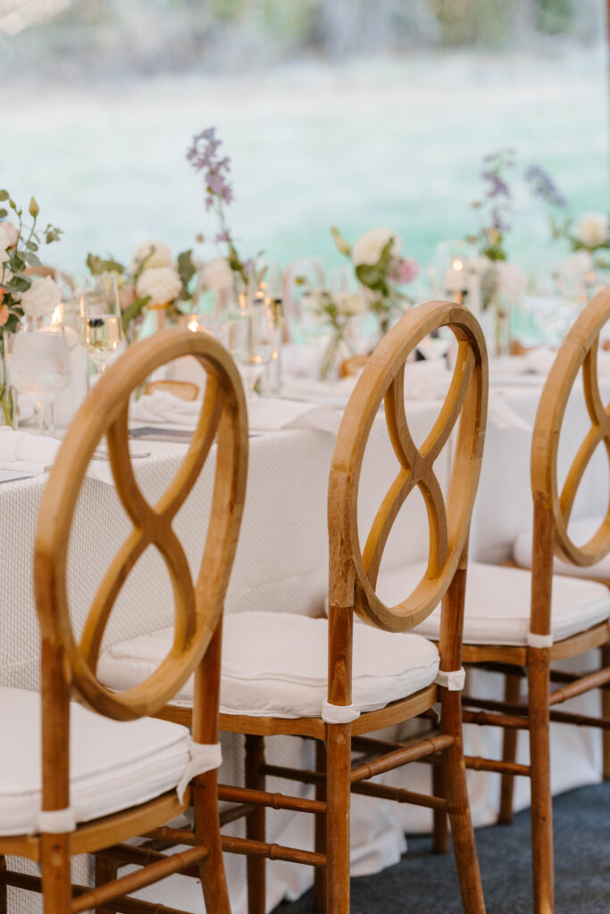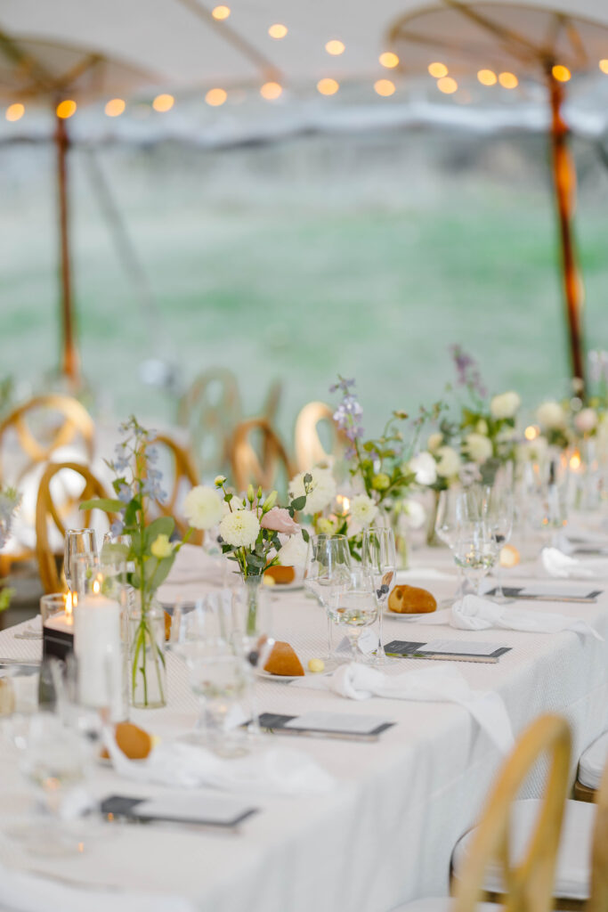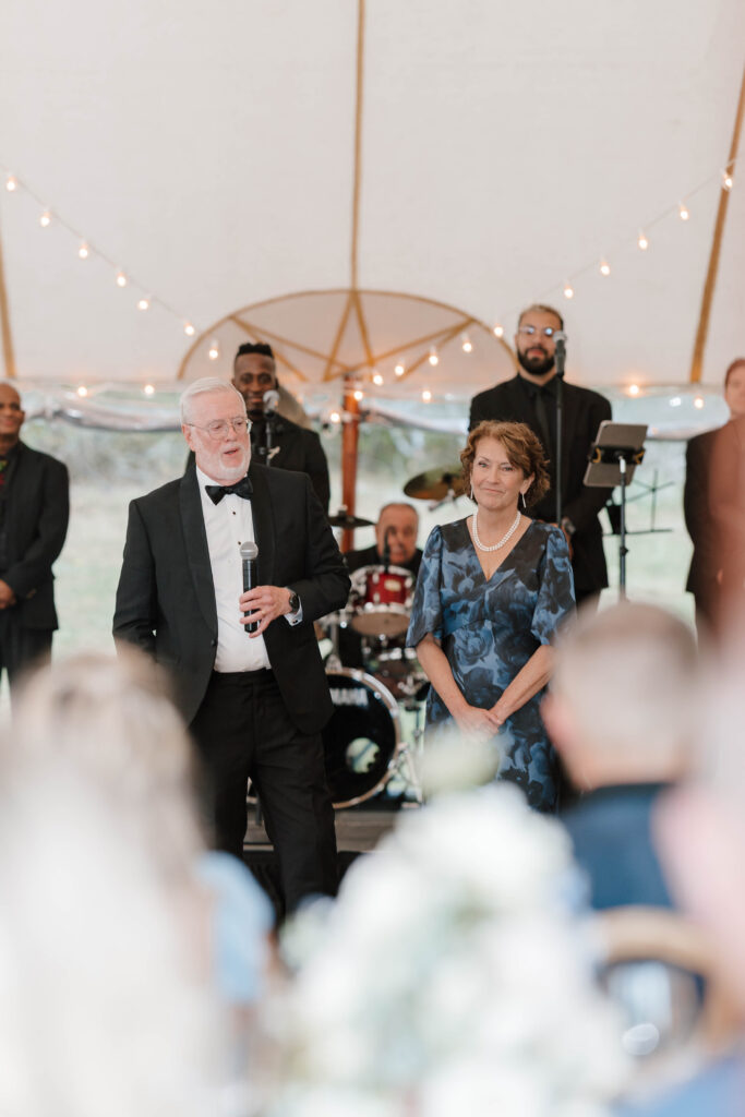 During cocktail hour, guests sipped from The Roaming Speakeasy — a stylish mobile bar serving beer on tap and craft cocktails that perfectly fit the laid-back island vibe. Laughter carried through the air as everyone mingled under the trees before moving to the tented reception space that had been completely transformed with elegant seating, lush florals, and rows of glowing candles.